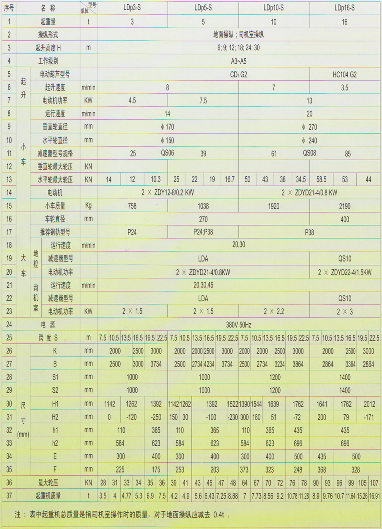 适应厂房空间小而要求起升高度大。